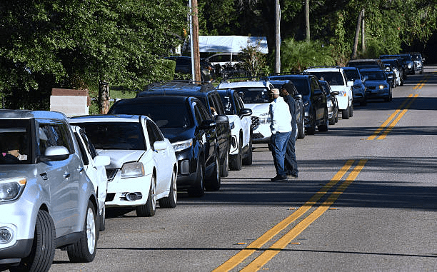 The line to get to a food bank in Florida on 31 October 2025. Getty Images.
